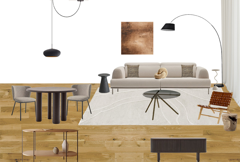 ♦ Development of the decor concept (2D collages) as part of Home Staging and Furnishing services – includes styling, furniture and decor selection within the budget, balancing cost-effective and design-forward pieces, without major renovation work.